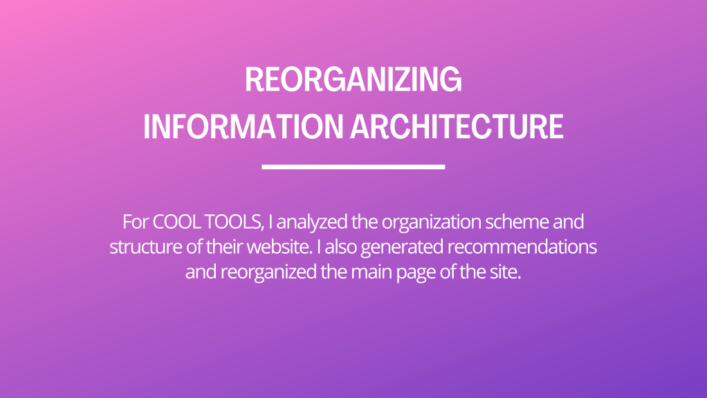 Arduino Cloud – This project was created to help Arduino Cloud to develop better strategies for organizing and presenting visual information in their company’s website, which will improve the usability and navigation of their site will create meaningful experiences for the users.
