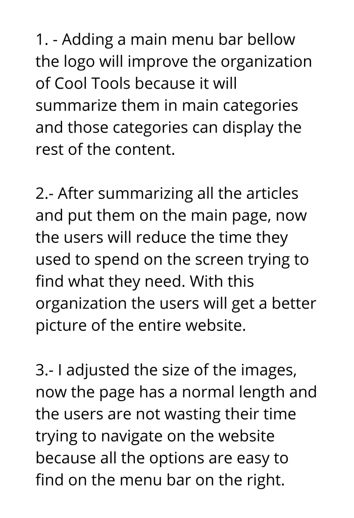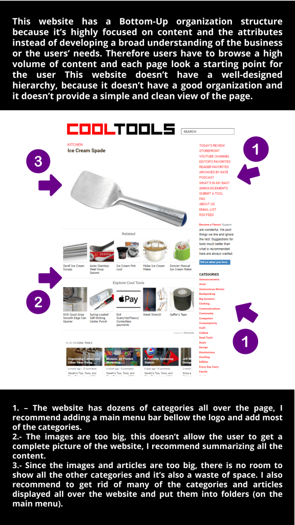 The purpose of this project is to analyze the organization scheme and structure of the COOL TOOLS website, generate explicit recommendations for how to better organize and structure the site, and justify your recommendations.