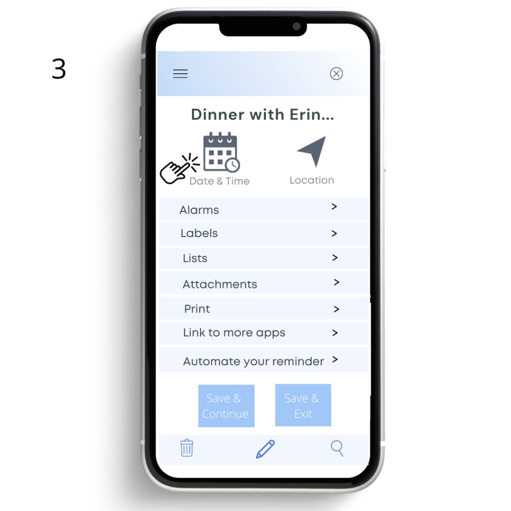 ReminderX is more than a reminder app, it’s an app that facilitates the users’ daily tasks. Users can create to-do lists and reminders, set automated payments, alarms, attach documents, send their notes to print, and link ReminderX to other apps to speed up their tasks. After gathering some data I discovered that half of my interviewees were using more that one app and their computers for work and for their personal lives, so I decided to design one app that can cover all their needs.